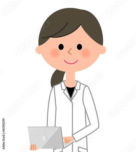 白衣の女性 ノートPC