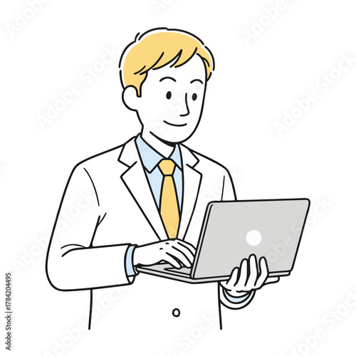 ノートPCで仕事するビジネスマンのイラスト