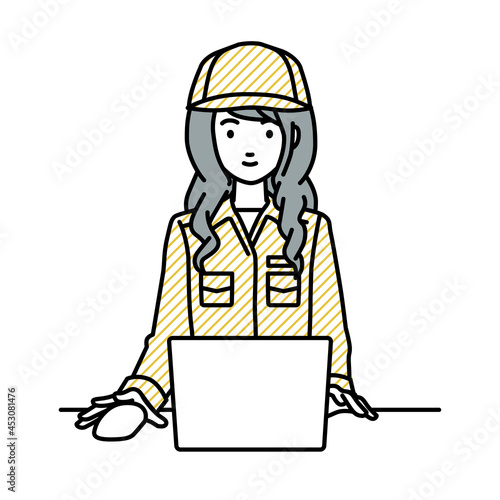 デスクで座ってPCを使っている作業員の女性