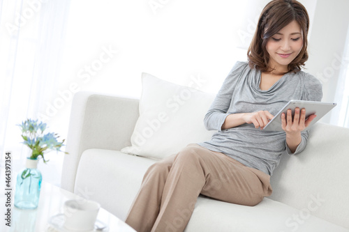 タブレットPCを操作する女性
