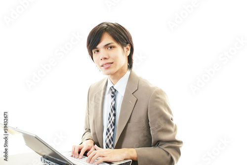 personal computer, personal computer, business, businessman, man, man, smile, people, japanese, health, cosmetic, model, happy, happiness, healthful, good-looking, office, web, light, clean, white background, copy space, pose, work, uniform, adult, expression, japan, corporate, employee, adult, work, enjoyment, smile, alone, face, hair, mouth, lip, asian, young, youth