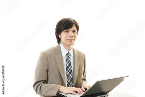 personal computer, personal computer, business, businessman, man, man, smile, people, japanese, health, cosmetic, model, happy, happiness, healthful, good-looking, office, web, light, clean, white background, copy space, pose, work, uniform, adult, expression, japan, corporate, employee, adult, work, enjoyment, smile, alone, face, hair, mouth, lip