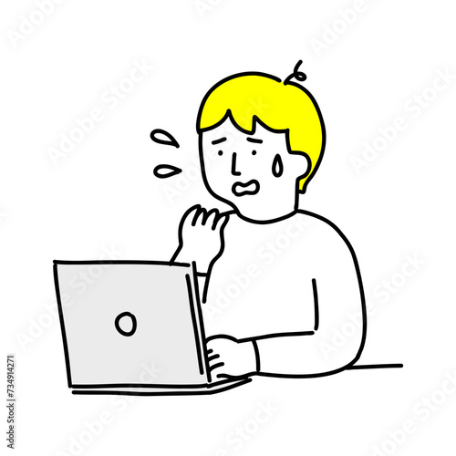 ノートPCをしながら焦る若い男性
