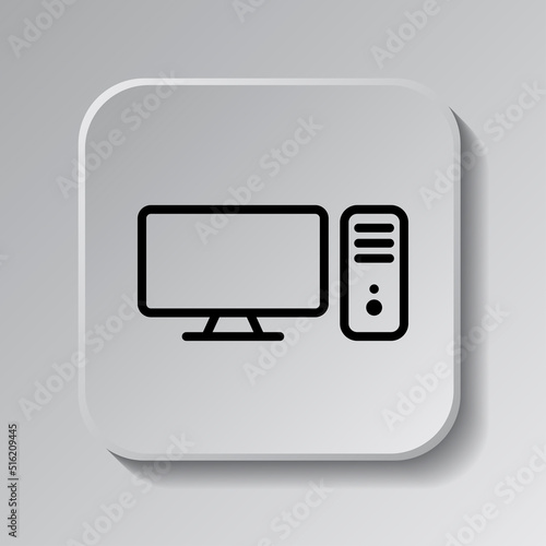 PC simple icon vector. Flat design. Black icon on square button with shadow. Grey background.ai