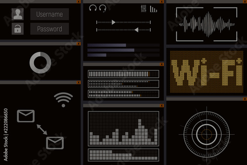 PC software with wi-fi. Screen vector illustration. WEB hacker. Security software.