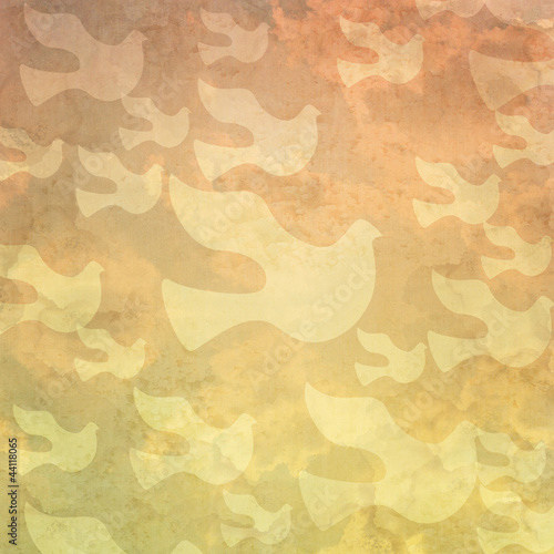 Peace icon on old paper background and pattern
