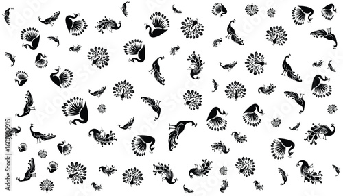 Peacock Silhouette Pattern Vector