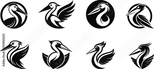 Pelican bird logo set vector illustration