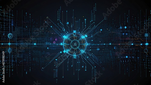 Perfect digital background showing data, network, processor, analysis, graphs etc. with artificial intelligence concept