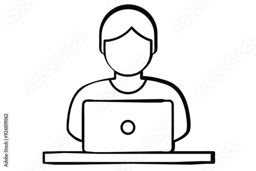 Person at the computer symbol. Computer work icon. Office work sign. Remote work symbol. Isolated. Transparent Background Cut Out
