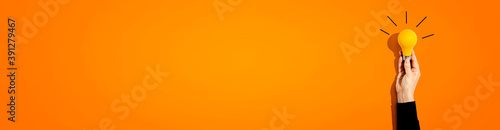 Person holding a yellow light bulb - Idea and creativity theme