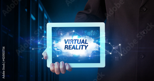 Person holding tablet, technology concept