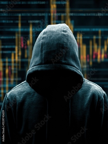 Person in Hoodie Analyzes Betting Data With a Tech Vibe in a Dimly Lit Space Featuring Colorful Graphical Data
