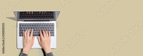 Person using a laptop computer from above