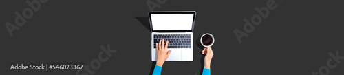 Person using a laptop computer from above