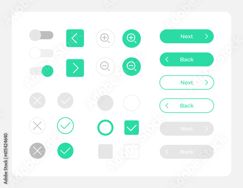 Personal account navigation UI elements kit. Isolated vector components. Flat navigation menus and interface buttons template. Web design widget collection for mobile application with dark theme