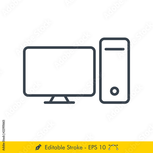 Personal Computer Icon / Vector - In Line / Stroke Design