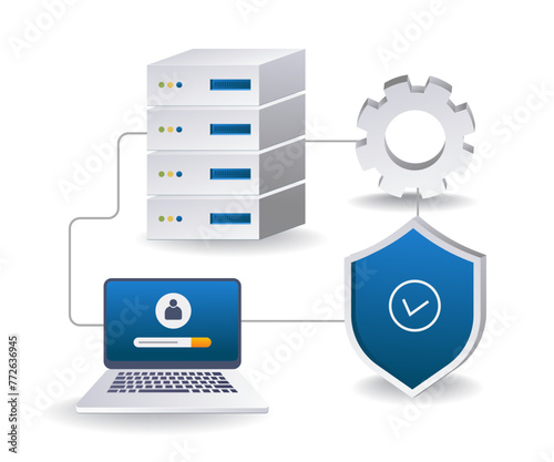 Personal server data security network flat isometric 3d illustration