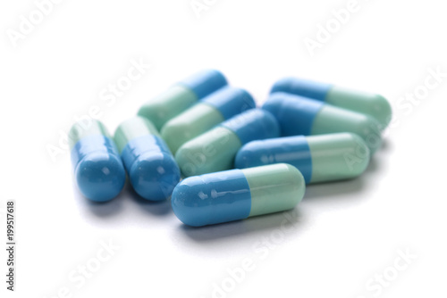 Pharmacy theme. Multicolored Isolated Pills and Capsules.