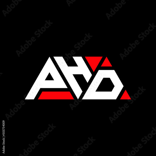 PHD triangle letter logo design with triangle shape. PHD triangle logo design monogram. PHD triangle vector logo template with red color. PHD triangular logo Simple, Elegant, and Luxurious Logo...