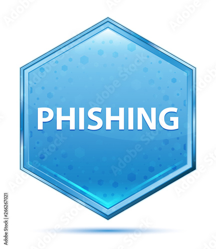 Phishing crystal blue hexagon button