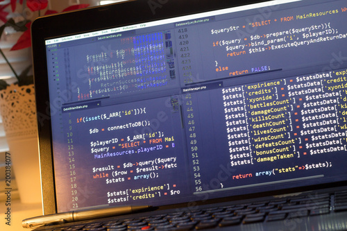 PHP back-end code. Computer programming source code. Abstract screen of web developer. Digital technology modern background. Code is created by myself.