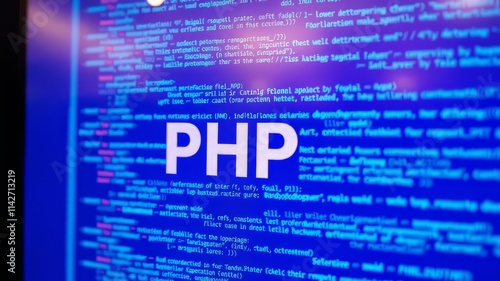 PHP Code Editor Blue Background AI Photo, Modern Programming, Coding, Software Development