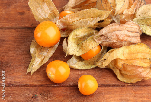 Physalis heap on wooden background