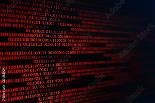 picture of red binary code on computer LED Screen display