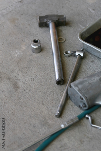 Pile maintenance tool in a car repair.