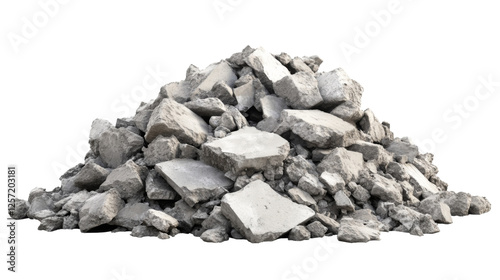 Pile of broken concrete pieces forming a mound on transparent background