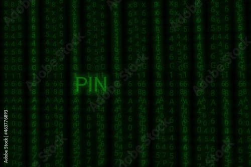 Pin text writing on black with binary code background,hacking information technology concept,Hack pin and data,scam