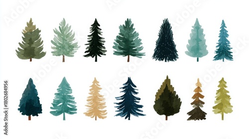 Pine tree vectors. Simple Christmas trees on white.