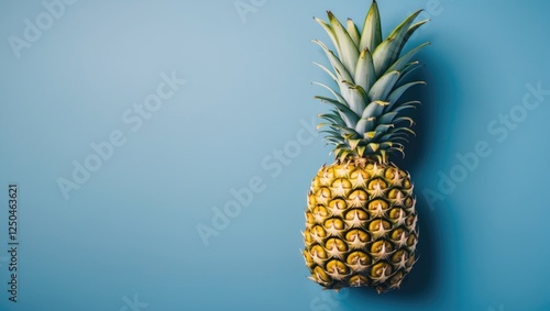 Pineapple Displayed in the Top Right Corner Against a Solid Blue Background with Ample Space for Text or Design Elements