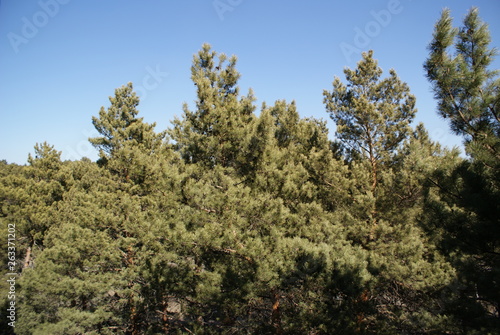 Pines spring forest sky