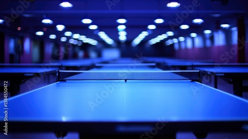 Ping Pong Tournament Hall Rows of Tables Under Bright Lights