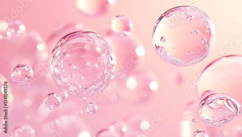 Pink Bubbles Floating in Liquid, Abstract Background