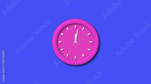 Pink color 12 hours 3d wall clock on blue background,pink color 3d wall clock isolated
