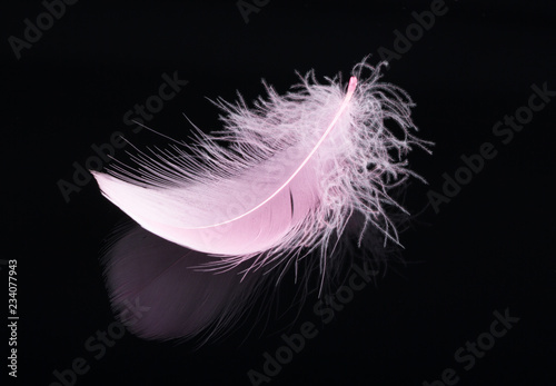 Pink feather isolated on black background