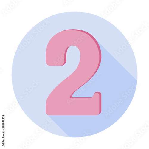 Pink flat number two flat icon on a blue background