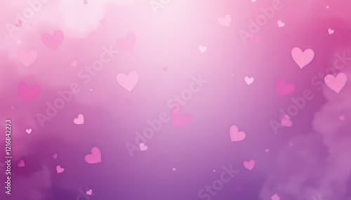 Pink gradient hearts on soft dreamy background.