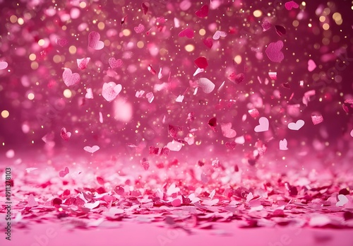 Pink Heart Confetti Falling