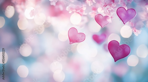 Pink Hearts Hanging Among Blossoming Cherry Branches