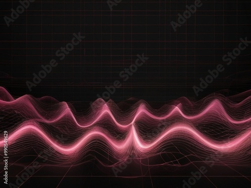 Pink light wave flowing on digital grid background