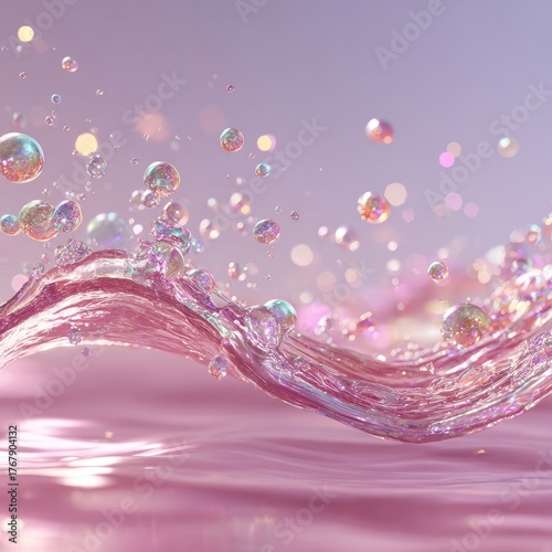 Pink Liquid Splash with Bubbles and Glitter