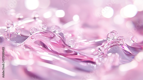 Pink liquid with bubbles, close-up.
