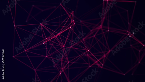 Pink network connection technology. Abstract background with points, lines and particles. Digital futuristic backdrop. Big data visualization. 3D rendering.