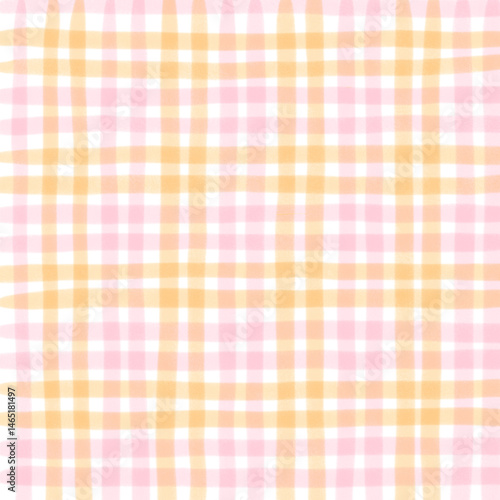 Pink Orange Plaid Gingham Check Hand Drawn Background Pattern Overlay
