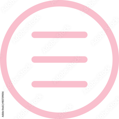 Pink round hamburger menu navigation button icon vector illustration