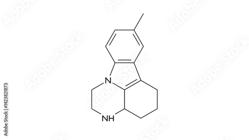 Pirlindole molecule, structural chemical formula, ball-and-stick model, isolated image antidepressant